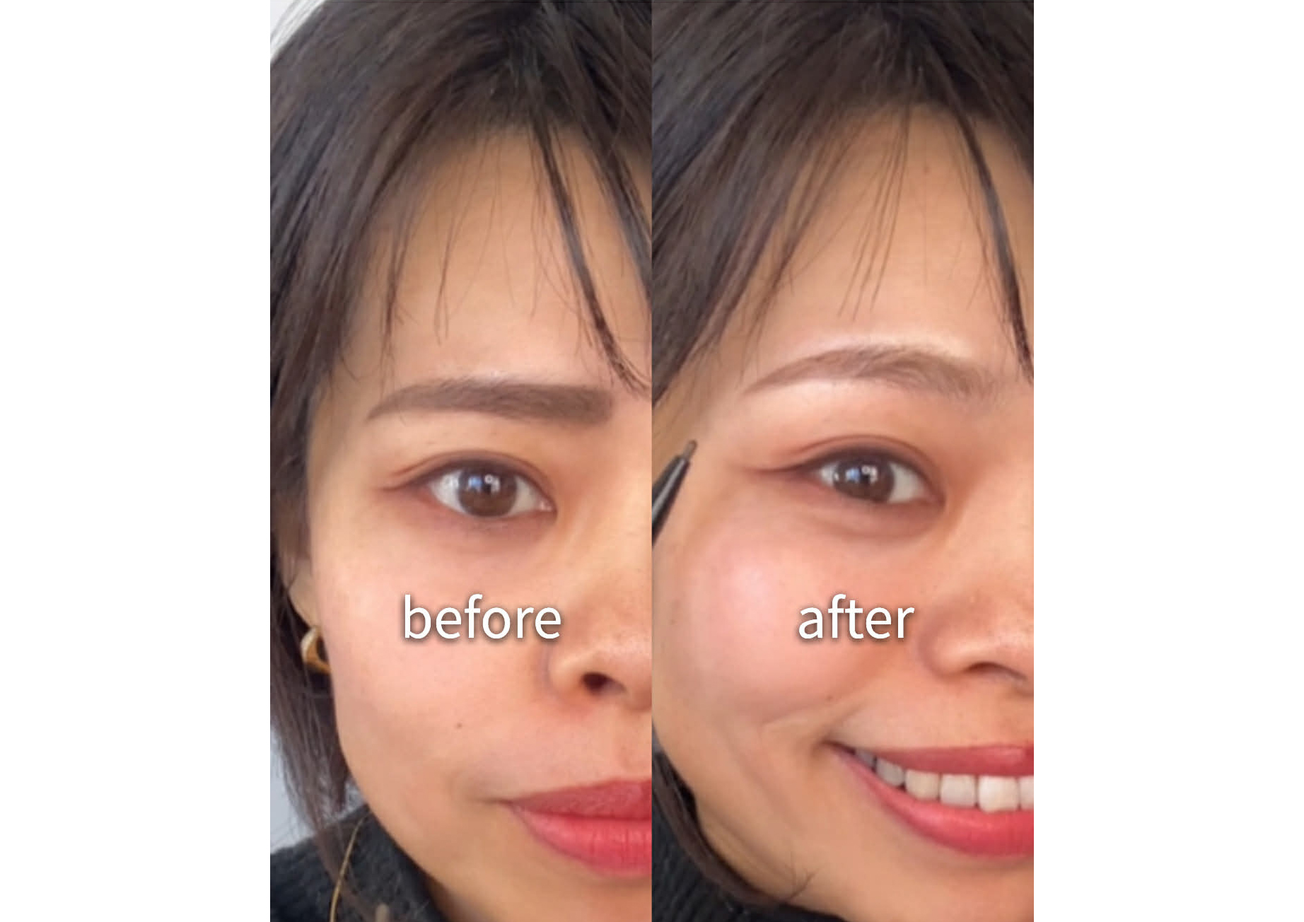 この講座では、自分に似合う眉の位置や形を確認しながら、実際にメイクをしながら眉を描いていきます。