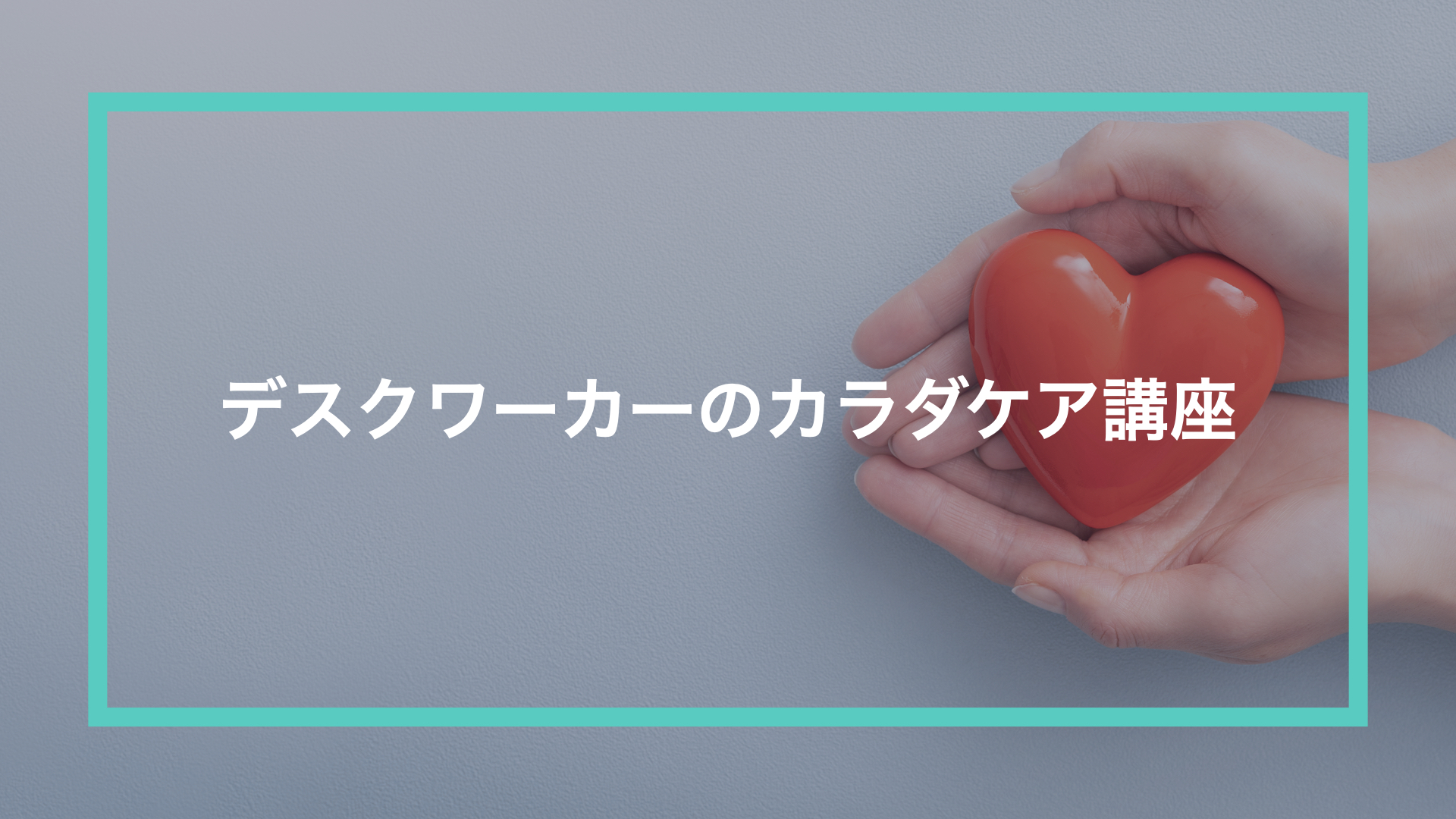 デスクワーク特有の身体の負担を理解し、仕事中・仕事後にすぐ実践できるカラダの使い方とセルフケアを、体を動かしながら学びます。